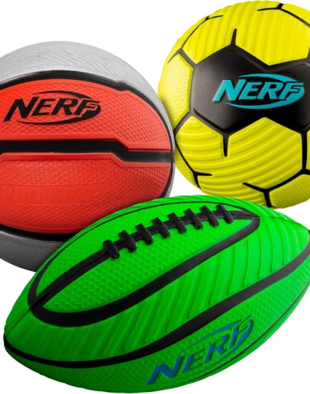 Nerf Mini Foam Sports Ball Set – Foam Football, Soccer Ball + Basketball Set Soft Foam Sports Set for Kids